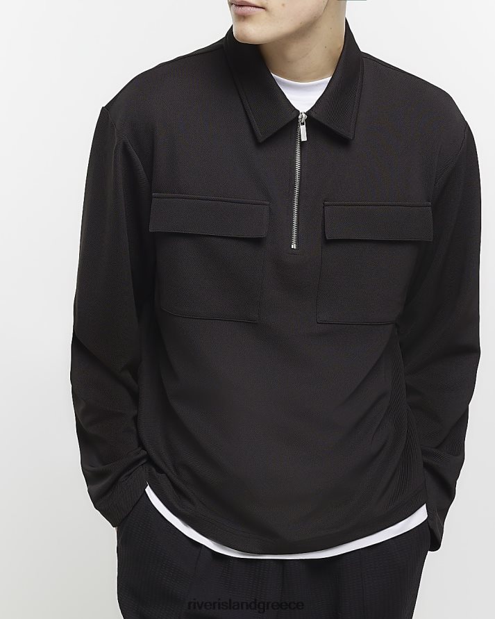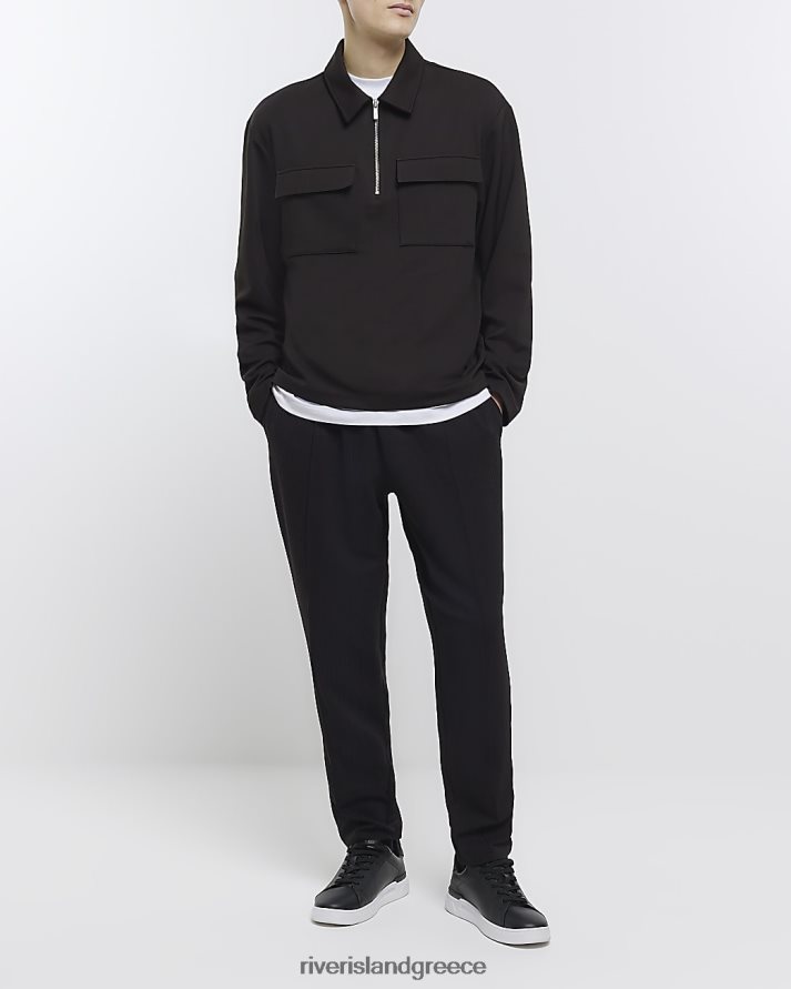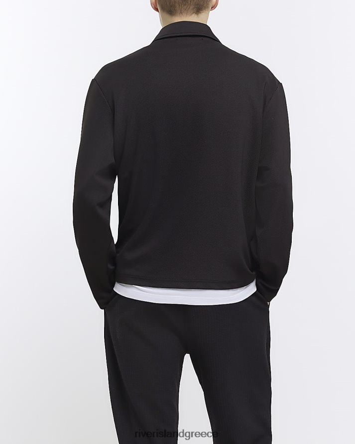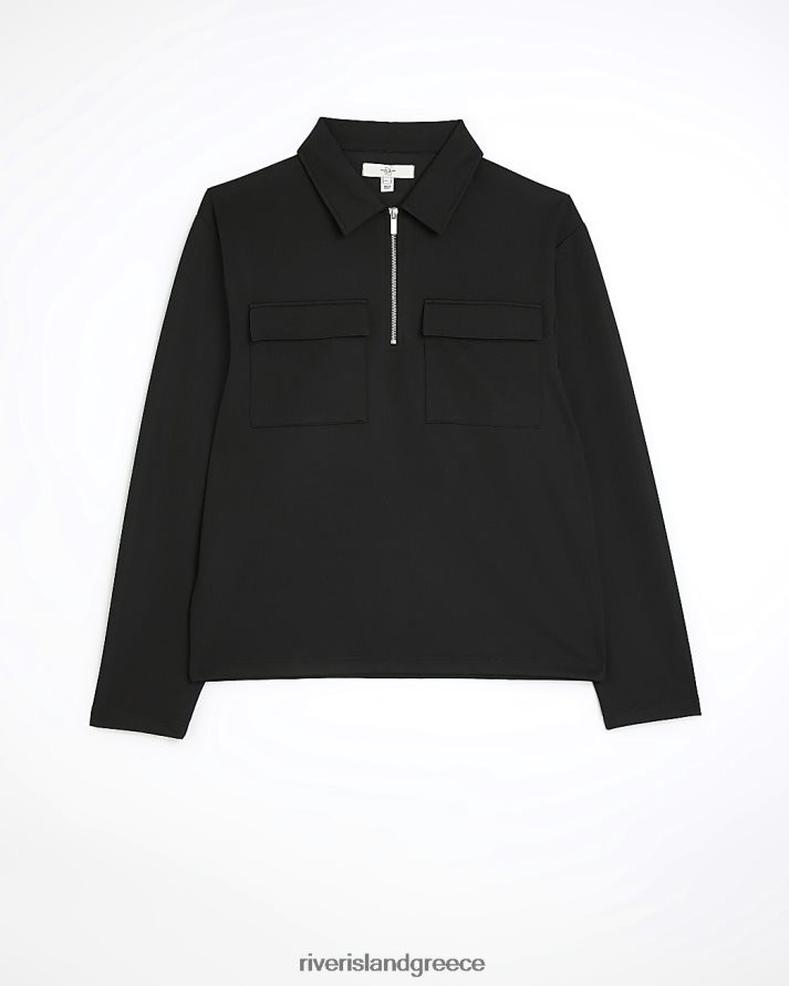 River Island ενδύματα μαύρος άνδρες κανονική εφαρμογή τέταρτο φερμουάρ πόλο B6N8X5828