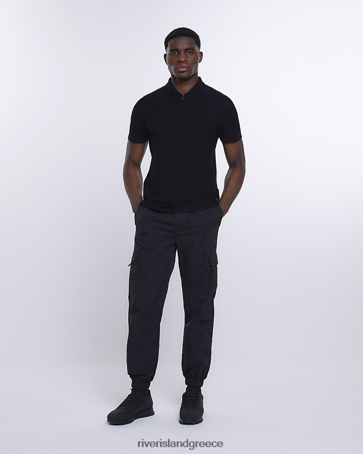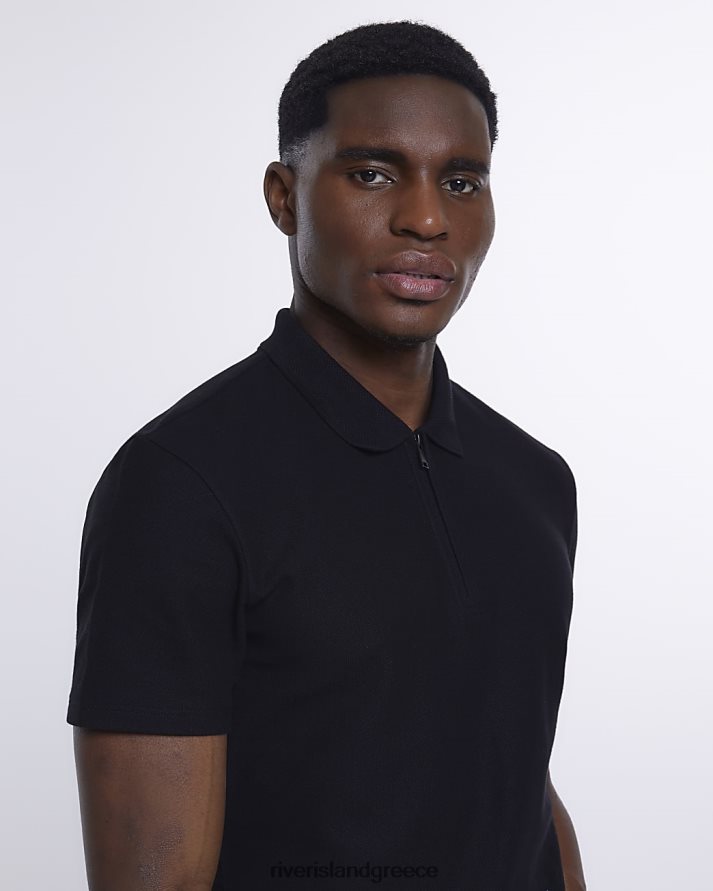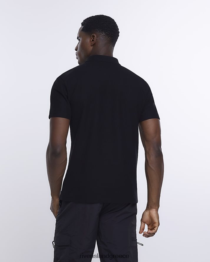 River Island ενδύματα μαύρος άνδρες κυψελωτή μπλούζα πόλο σε λεπτή εφαρμογή B6N8X2619