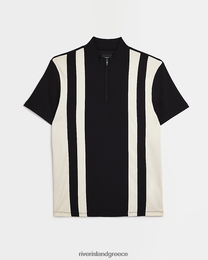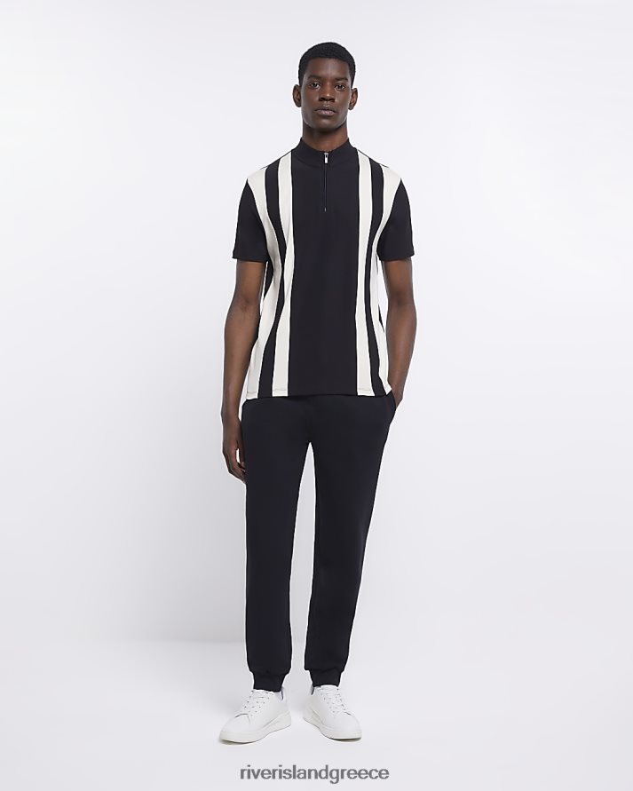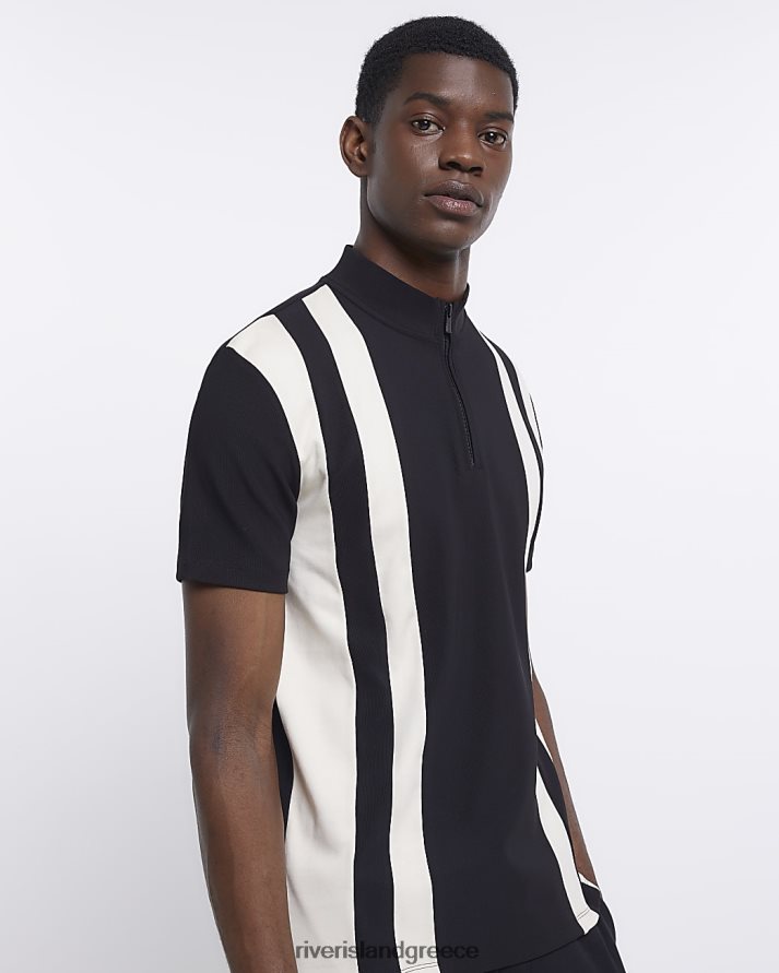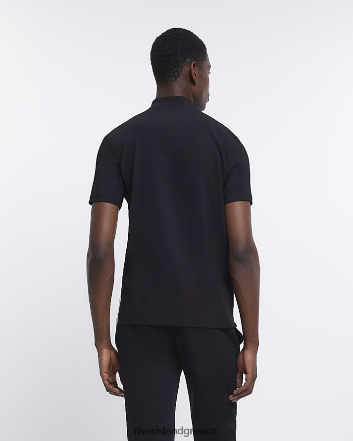 River Island ενδύματα μαύρος άνδρες μπλουζάκι πόλο με ριγέ χωνί σε λεπτή εφαρμογή B6N8X5839