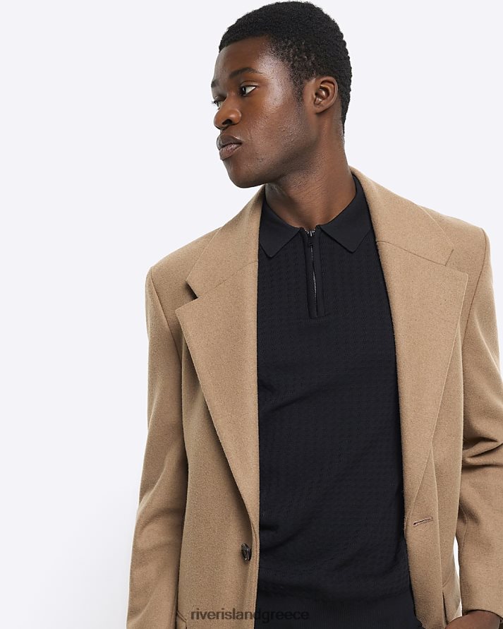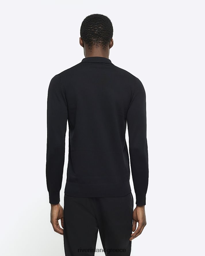 River Island ενδύματα μαύρος άνδρες πλεκτό πόλο καλώδιο για μυϊκή εφαρμογή B6N8X2912