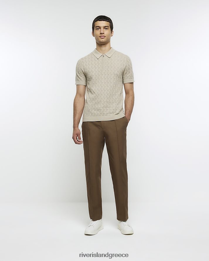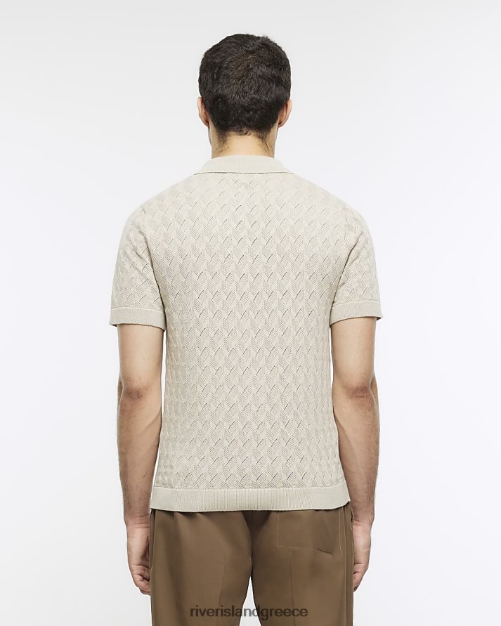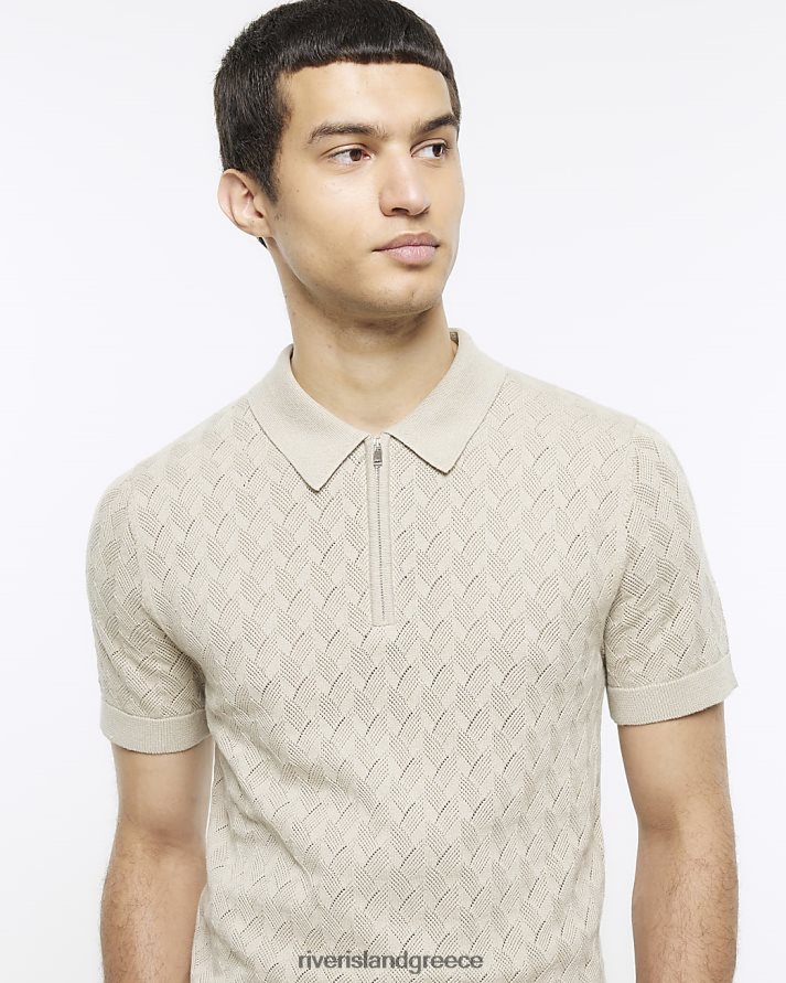 River Island ενδύματα μπεζ άνδρες slim fit πλεκτό μπλουζάκι πόλο B6N8X2455