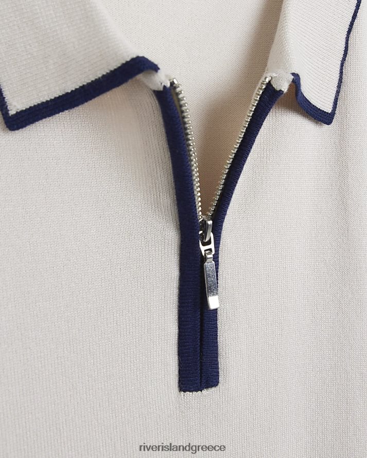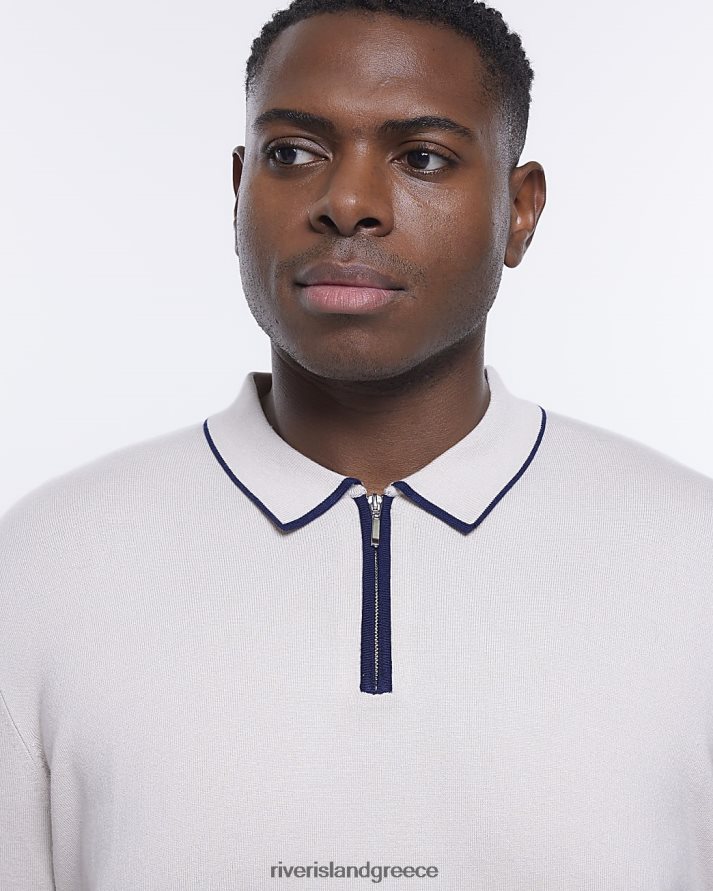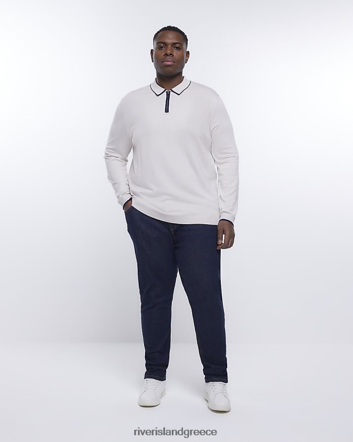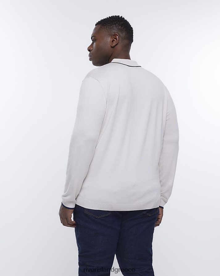 River Island ενδύματα πέτρα άνδρες μεγάλο & ψηλό slim fit μακρυμάνικο πόλο B6N8X5967