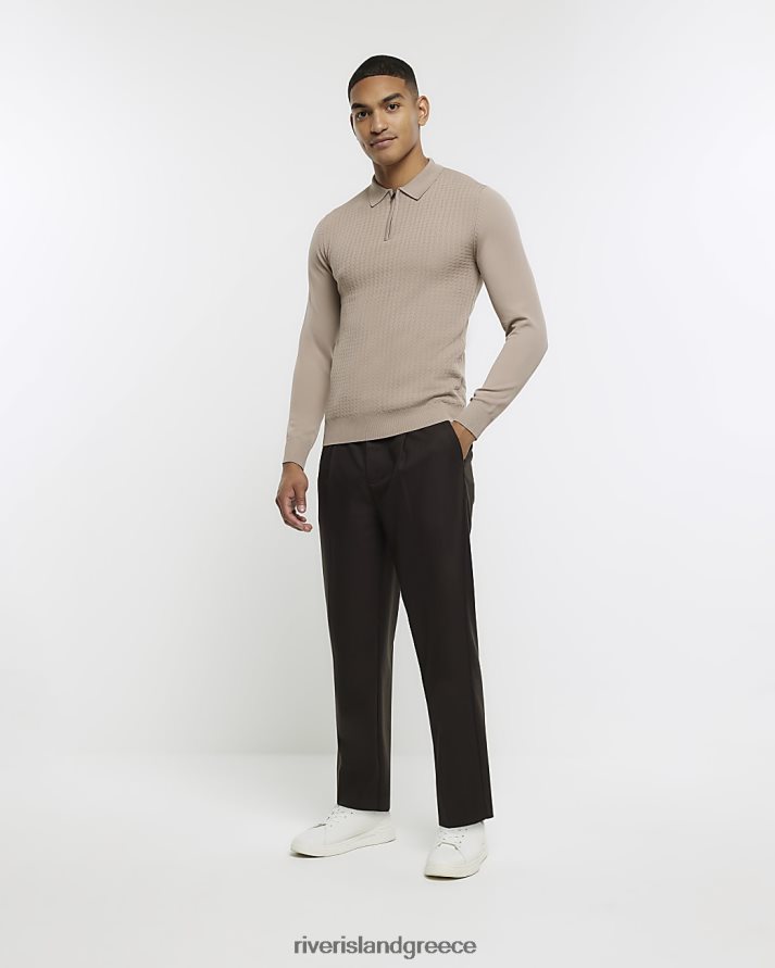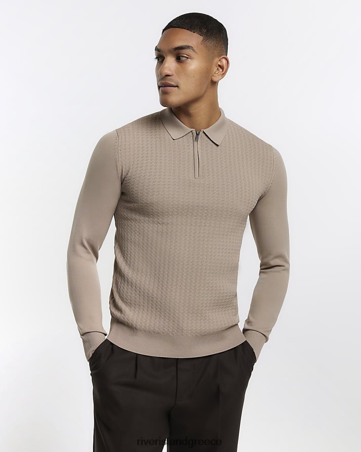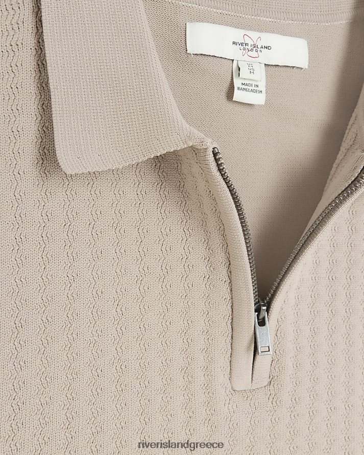 River Island ενδύματα πέτρα άνδρες πλεκτό πόλο καλώδιο για μυϊκή εφαρμογή B6N8X2911