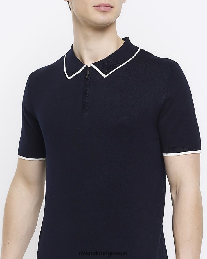 River Island ενδύματα ΠΟΛΕΜΙΚΟ ΝΑΥΤΙΚΟ άνδρες slim fit πλεκτό μπλουζάκι πόλο B6N8X2907