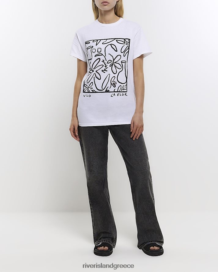 River Island ενδύματα άσπρο γυναίκες γραφικό μπλουζάκι με στάμπα B6N8X4519