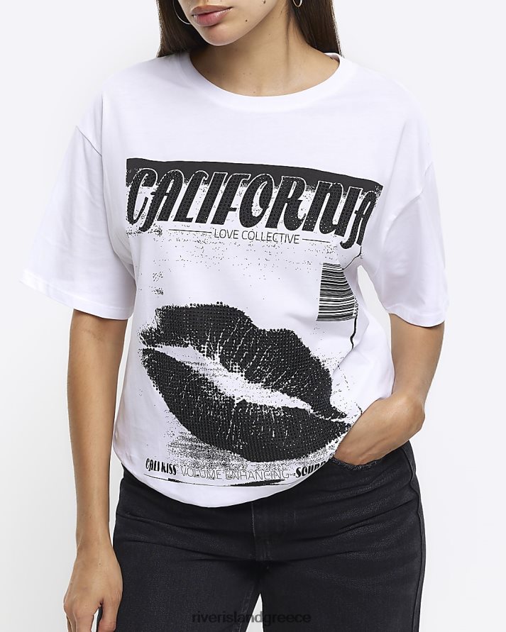 River Island ενδύματα άσπρο γυναίκες γραφικό μπλουζάκι με στάμπα B6N8X4615