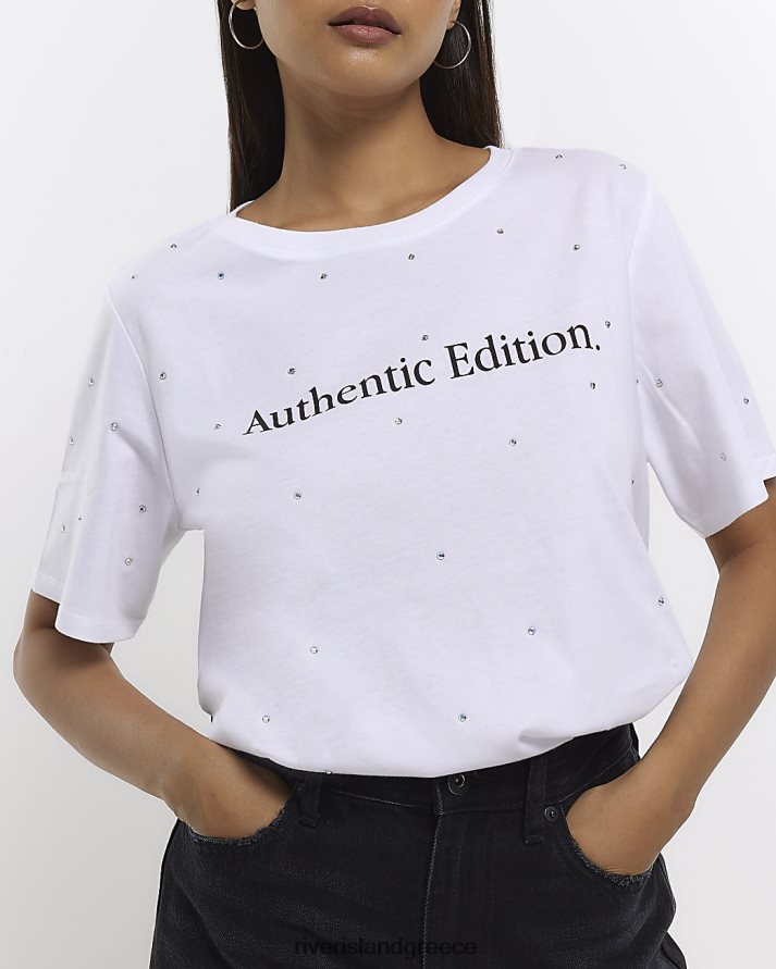 River Island ενδύματα άσπρο γυναίκες διακοσμημένο μπλουζάκι με γραφικά στάμπα B6N8X4624