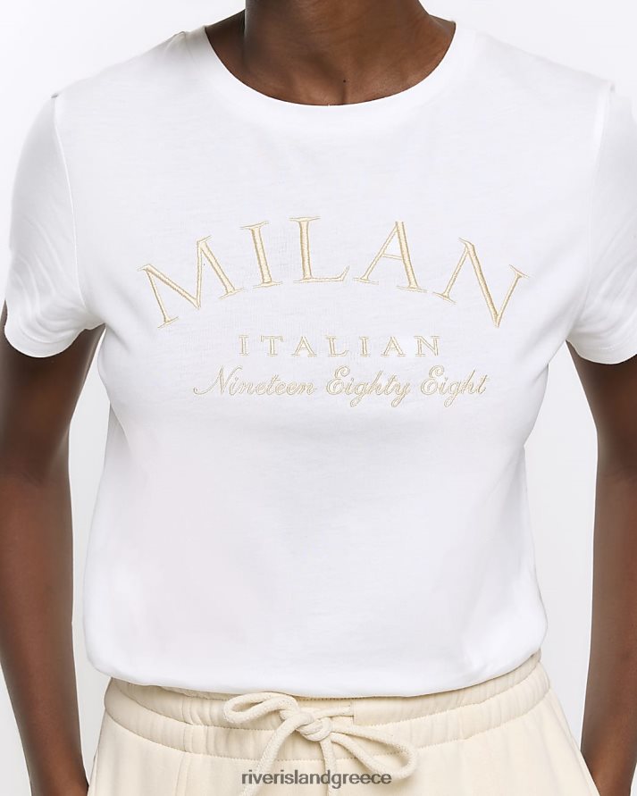 River Island ενδύματα άσπρο γυναίκες κεντητό μπλουζάκι B6N8X3855