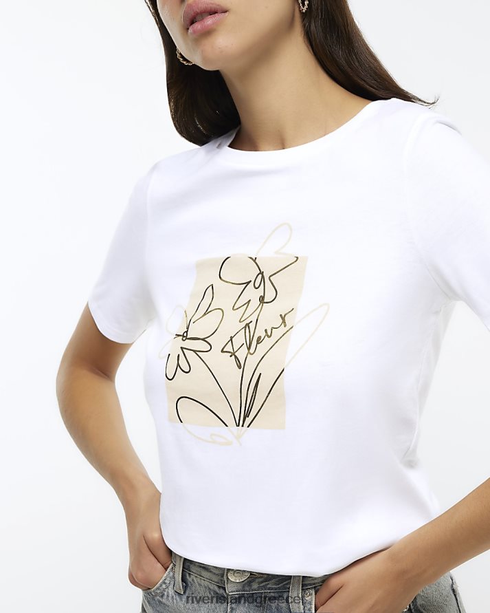 River Island ενδύματα άσπρο γυναίκες λουλούδι γραφικό μπλουζάκι B6N8X980