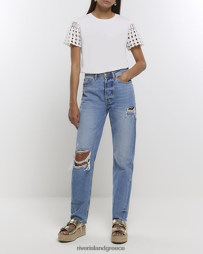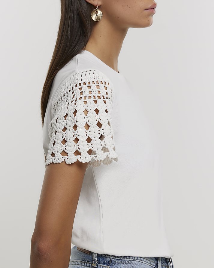 River Island ενδύματα άσπρο γυναίκες μπλουζάκι μανίκι με βελονάκι B6N8X4640