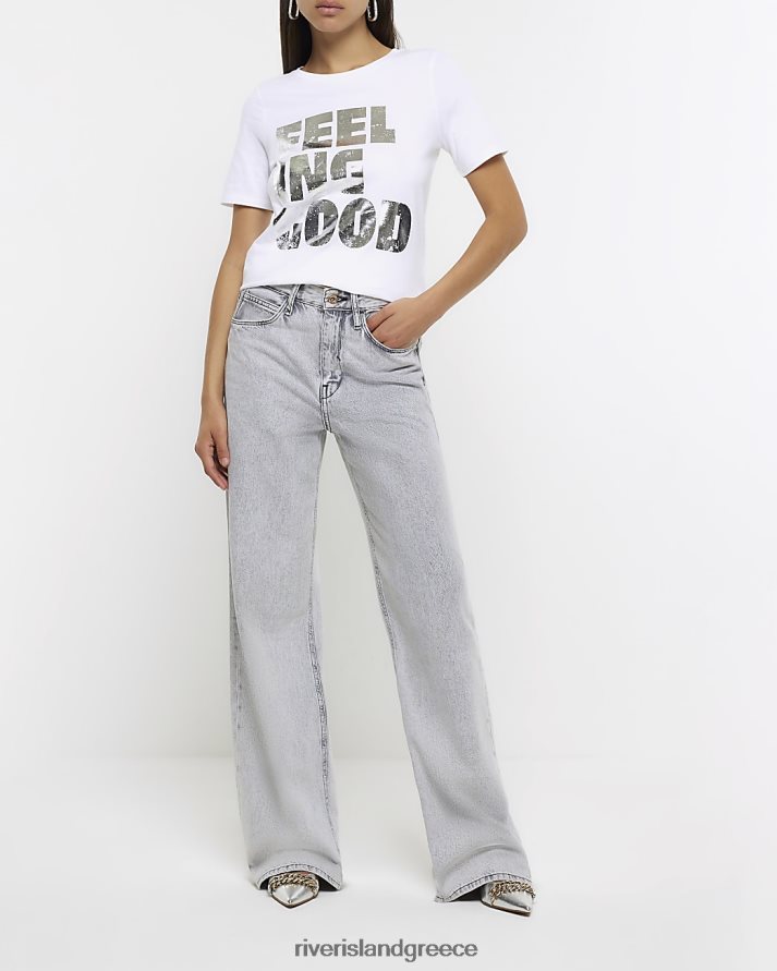River Island ενδύματα άσπρο γυναίκες μπλουζάκι μεταλλικό γραφικό B6N8X981