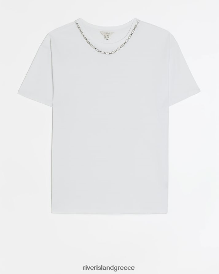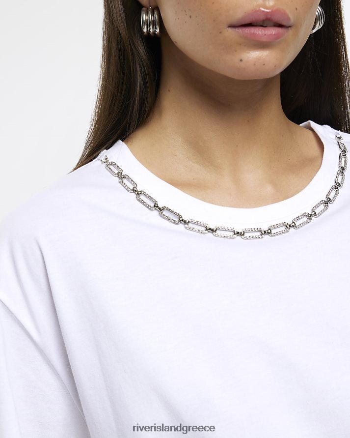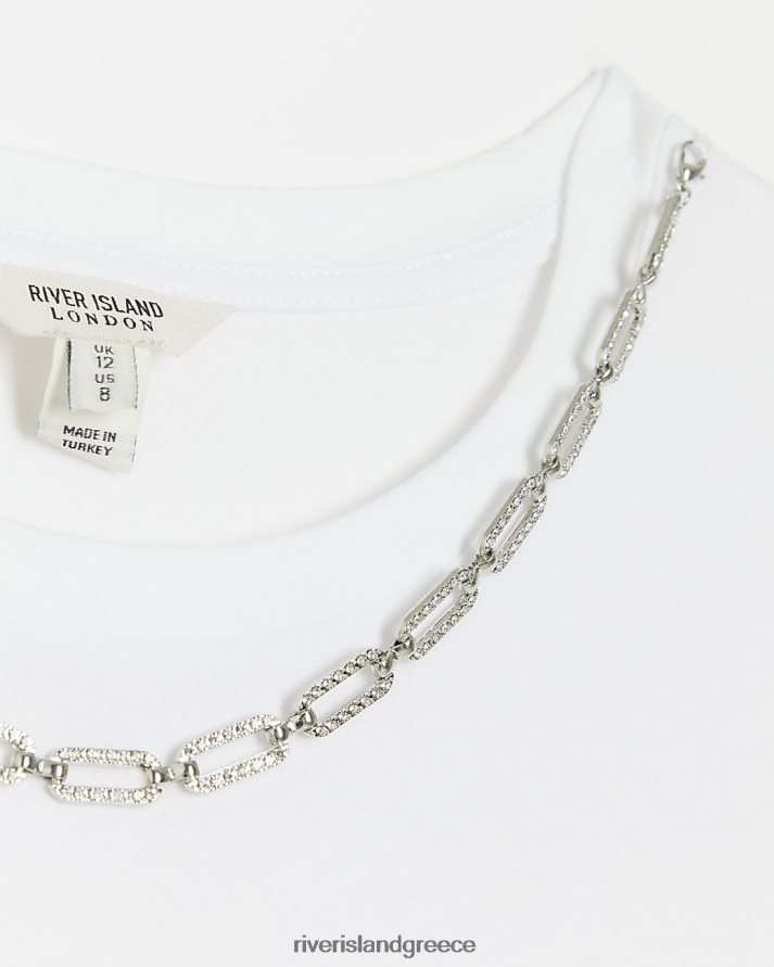 River Island ενδύματα άσπρο γυναίκες μπλουζάκι με αλυσίδα B6N8X4228