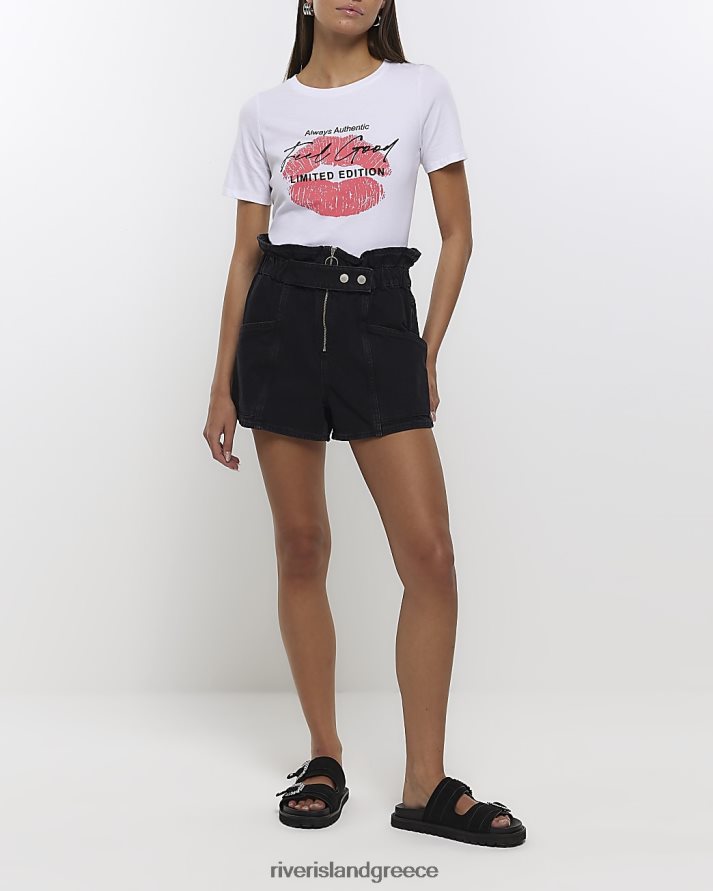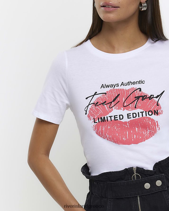 River Island ενδύματα άσπρο γυναίκες Μπλουζάκι με γραφικό στάμπα στα χείλη B6N8X4623