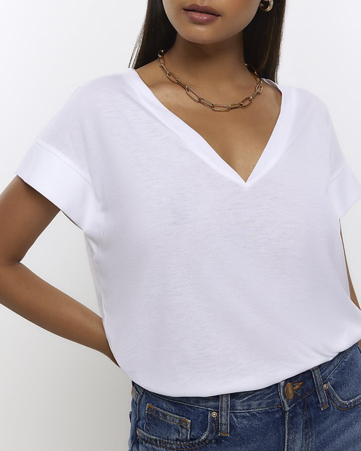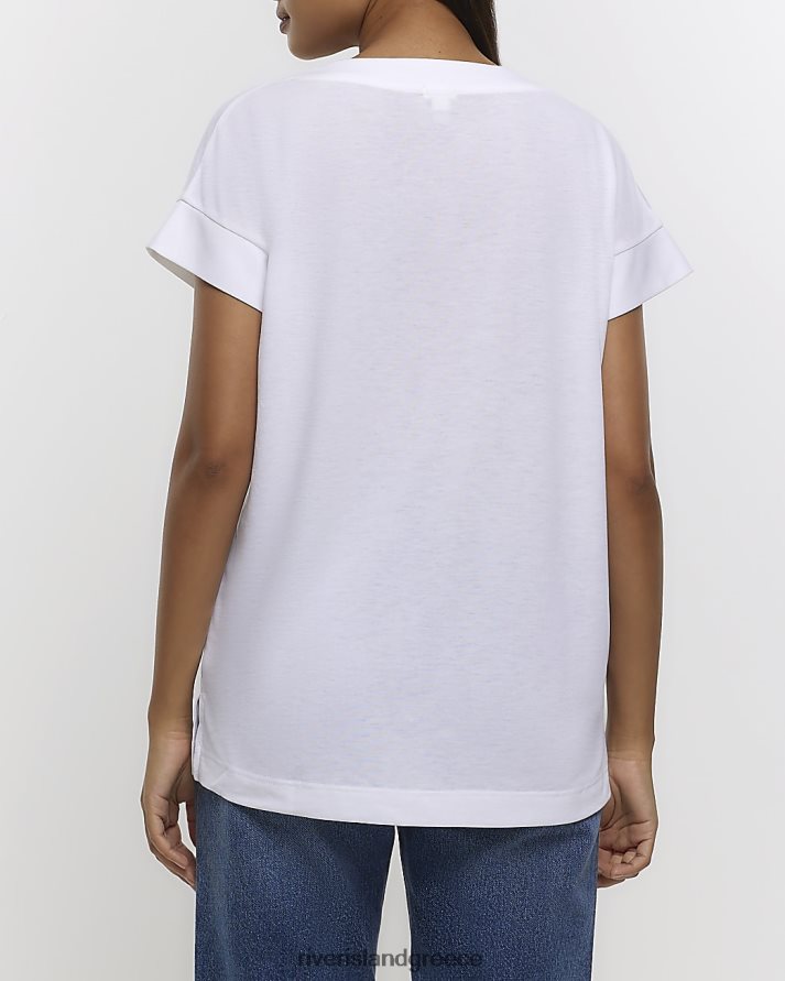 River Island ενδύματα άσπρο γυναίκες μπλουζάκι με λαιμόκοψη με επένδυση B6N8X1296