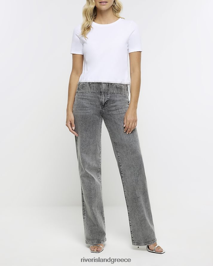 River Island ενδύματα άσπρο γυναίκες T-shirt diamante trim crop B6N8X415