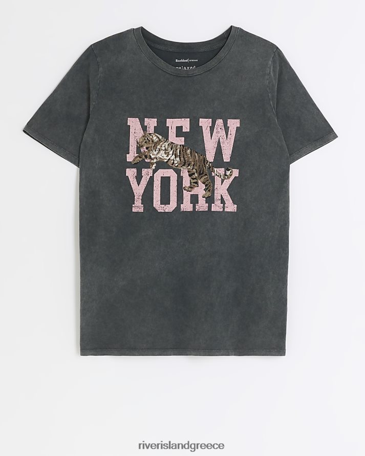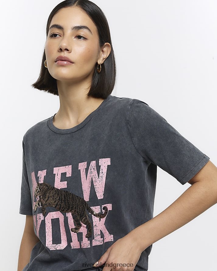 River Island ενδύματα γκρί γυναίκες γραφικό μπλουζάκι της Νέας Υόρκης B6N8X3902