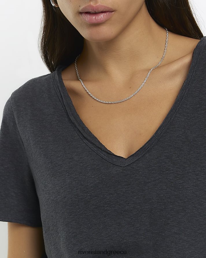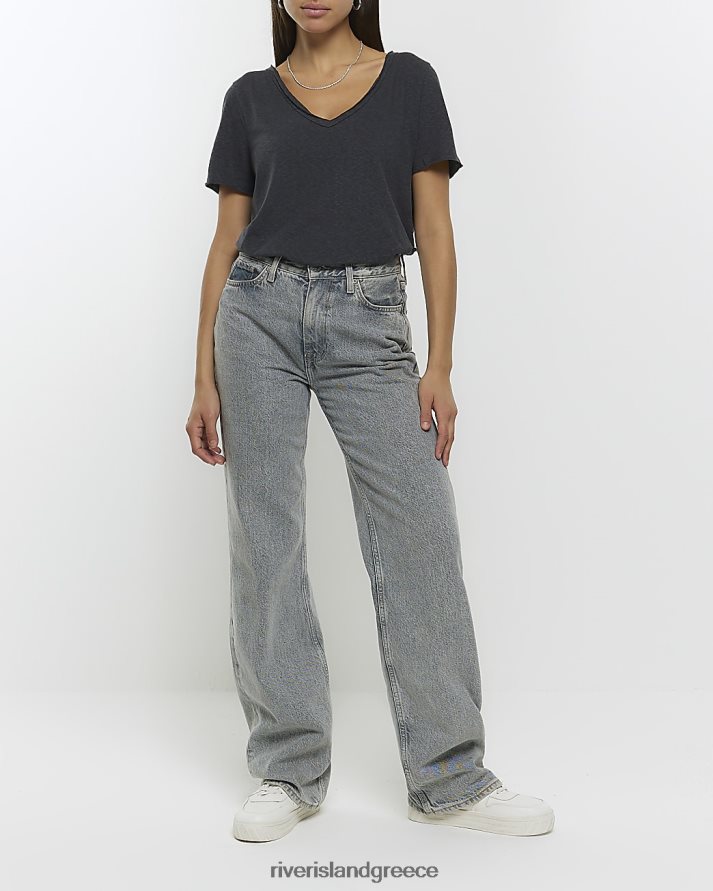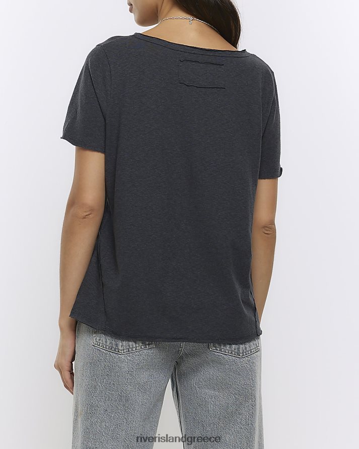 River Island ενδύματα γκρί γυναίκες μπλουζάκι με ακατέργαστο στρίφωμα με λαιμόκοψη B6N8X1198