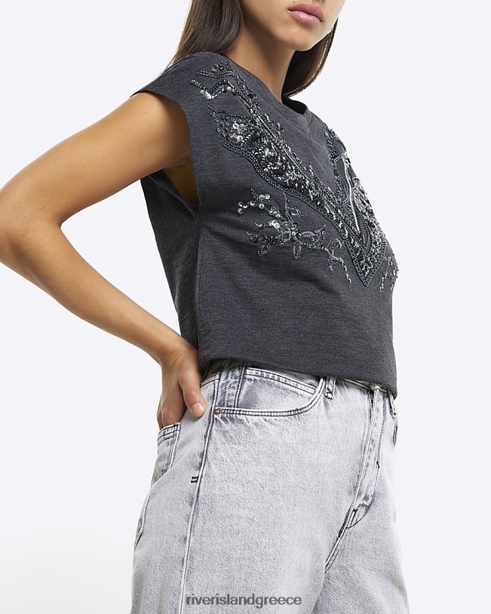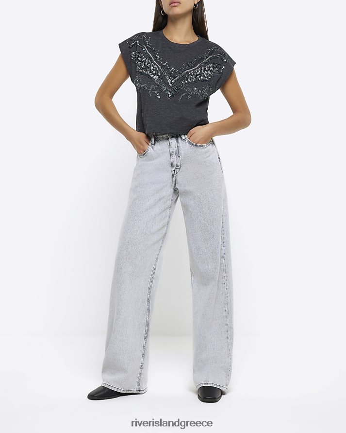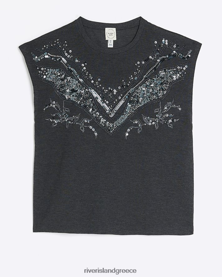 River Island ενδύματα γκρί γυναίκες μπλουζάκι με λεπτομέρεια παγιέτες B6N8X3755