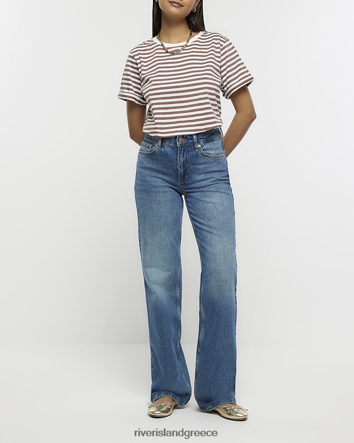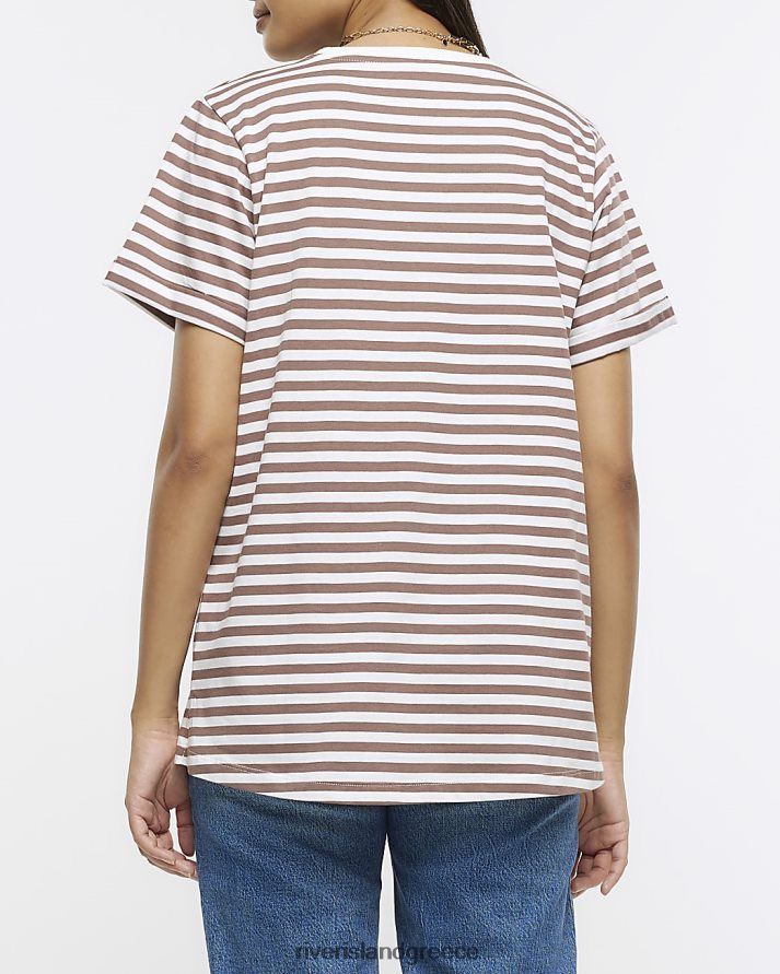 River Island ενδύματα καφέ γυναίκες ριγέ μπλουζάκι B6N8X4396