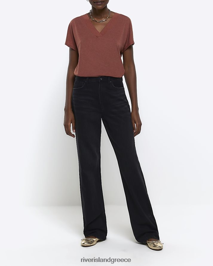 River Island ενδύματα καφέ γυναίκες T-shirt με λαιμόκοψη B6N8X871