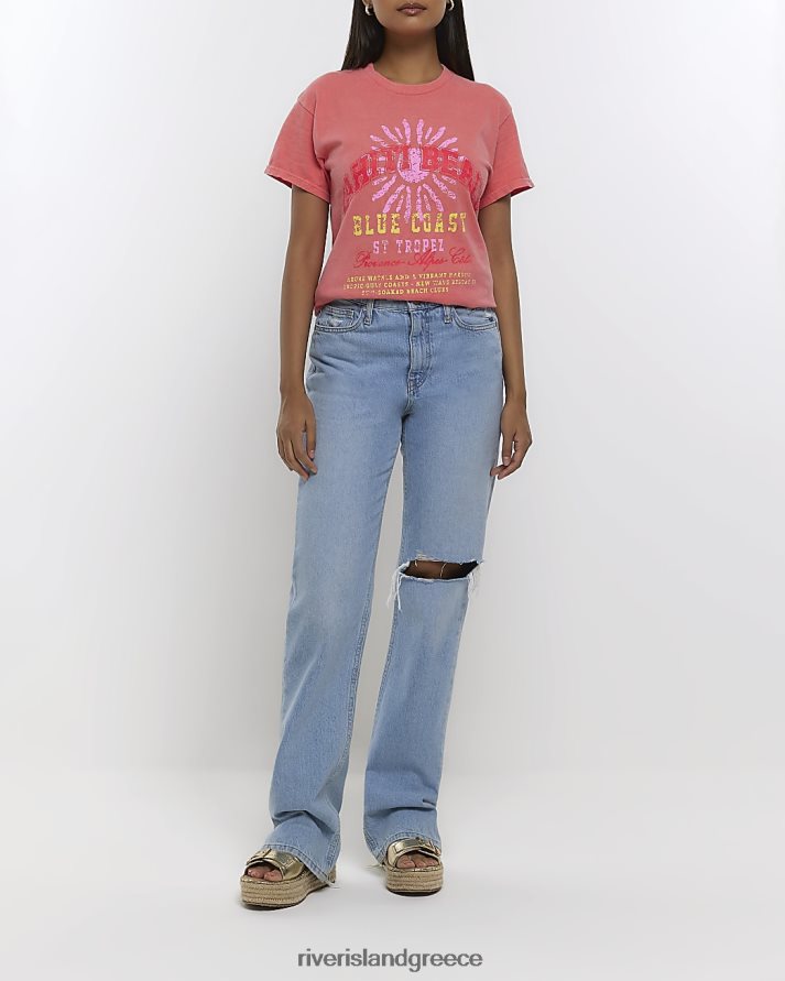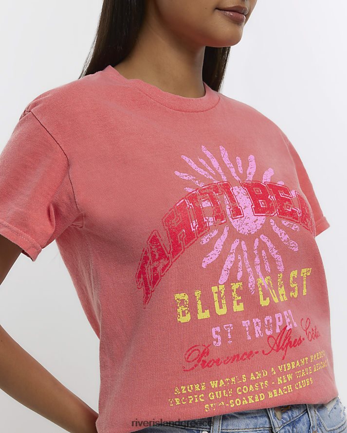 River Island ενδύματα κοράλλι γυναίκες γραφικό μπλουζάκι B6N8X4422
