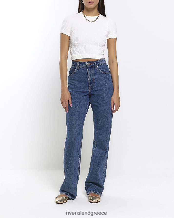 River Island ενδύματα κρέμα γυναίκες ανάγλυφο μπλουζάκι καλλιέργειας χωρίς ραφή B6N8X332