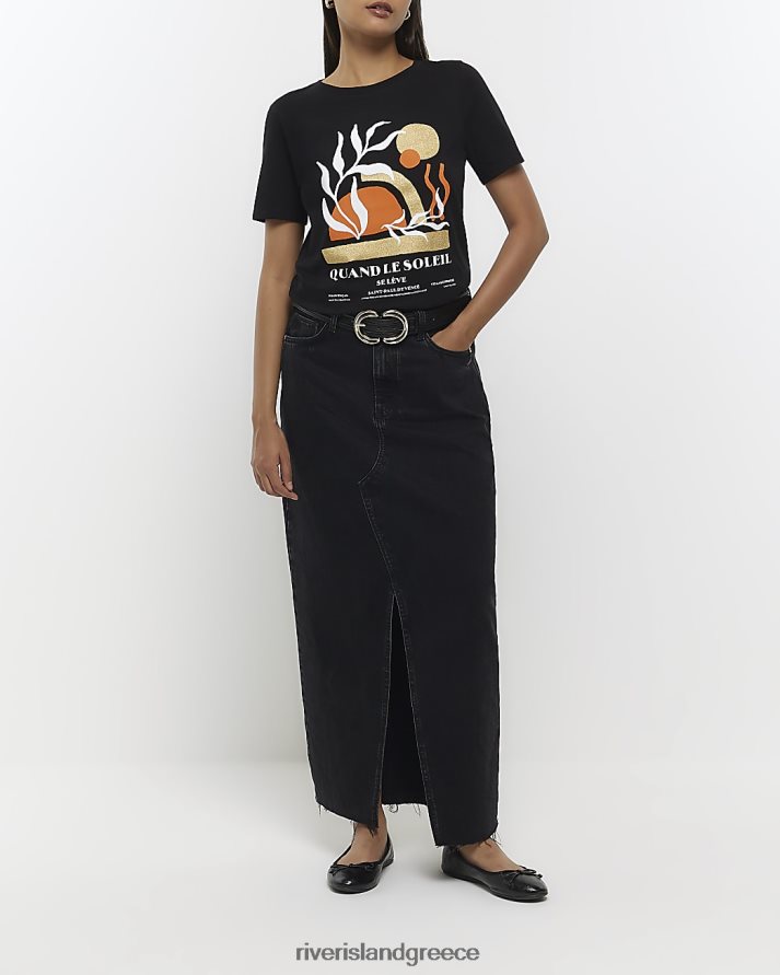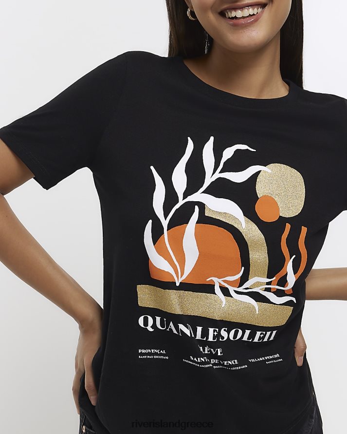 River Island ενδύματα μαύρος γυναίκες αφηρημένο γραφικό μπλουζάκι B6N8X976