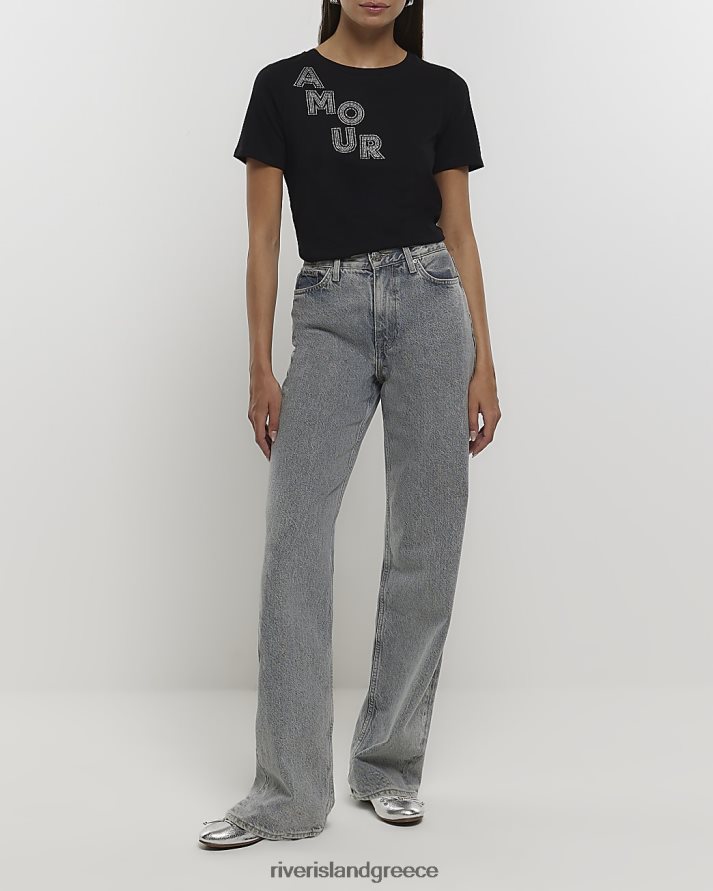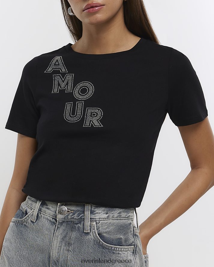 River Island ενδύματα μαύρος γυναίκες διακοσμημένο μπλουζάκι με γραφικά στάμπα B6N8X4651