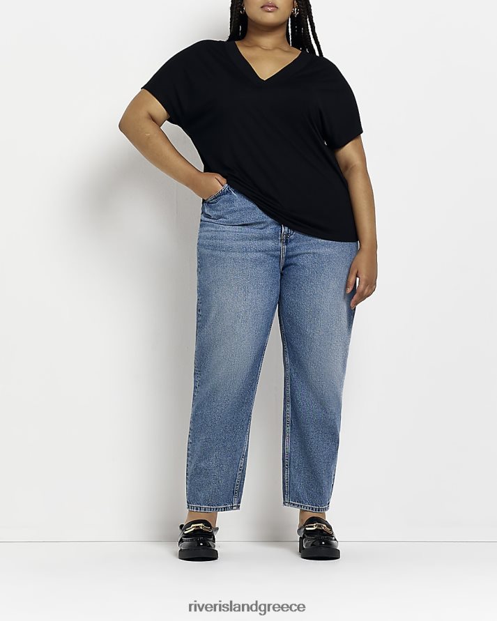 River Island ενδύματα μαύρος γυναίκες συν t-shirt με λαιμόκοψη B6N8X2267