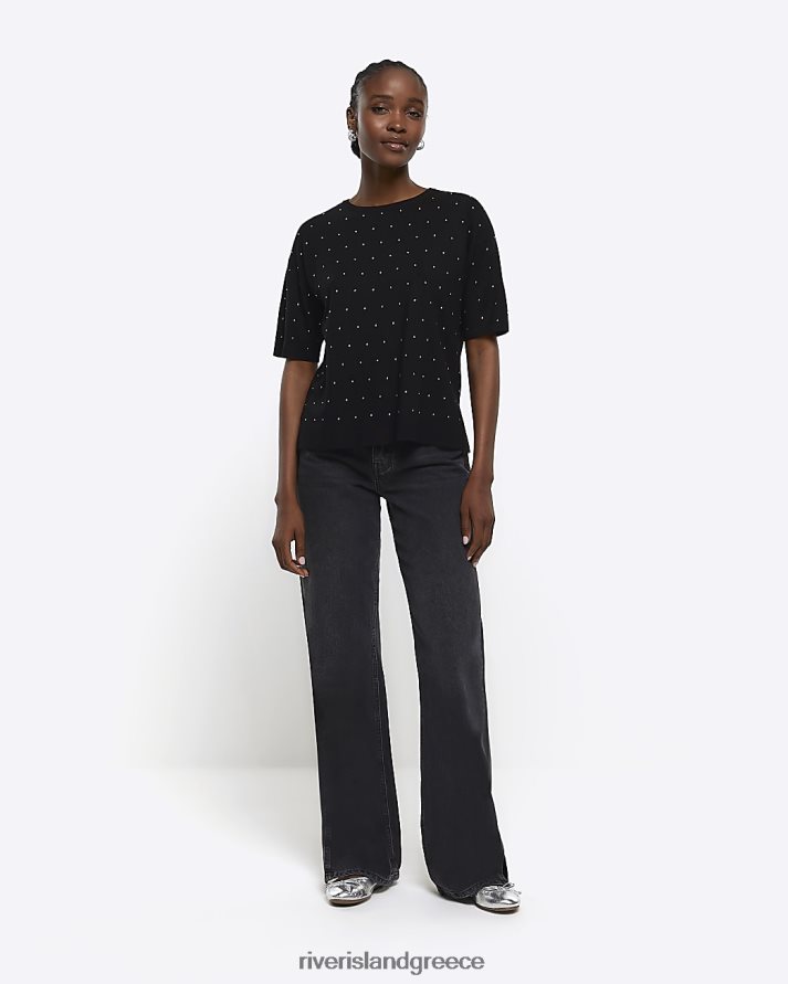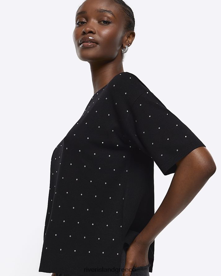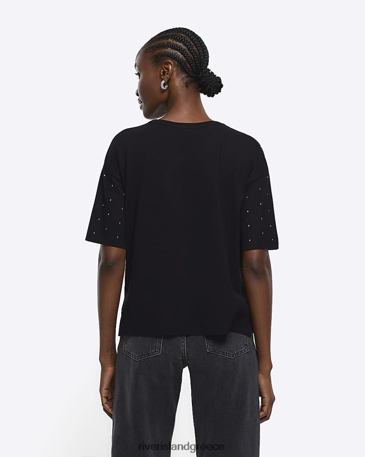 River Island ενδύματα μαύρος γυναίκες T-shirt με λεπτομέρεια διαμάντι B6N8X898