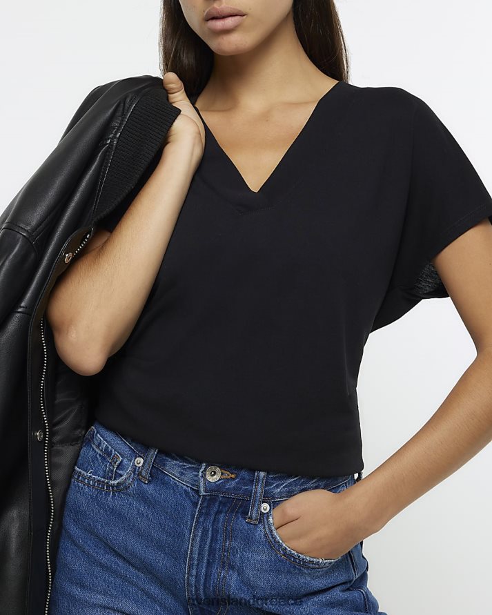 River Island ενδύματα μαύρος γυναίκες v t-shirt με λαιμόκοψη B6N8X870