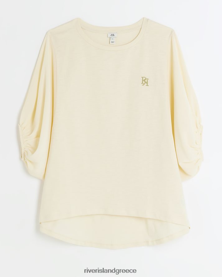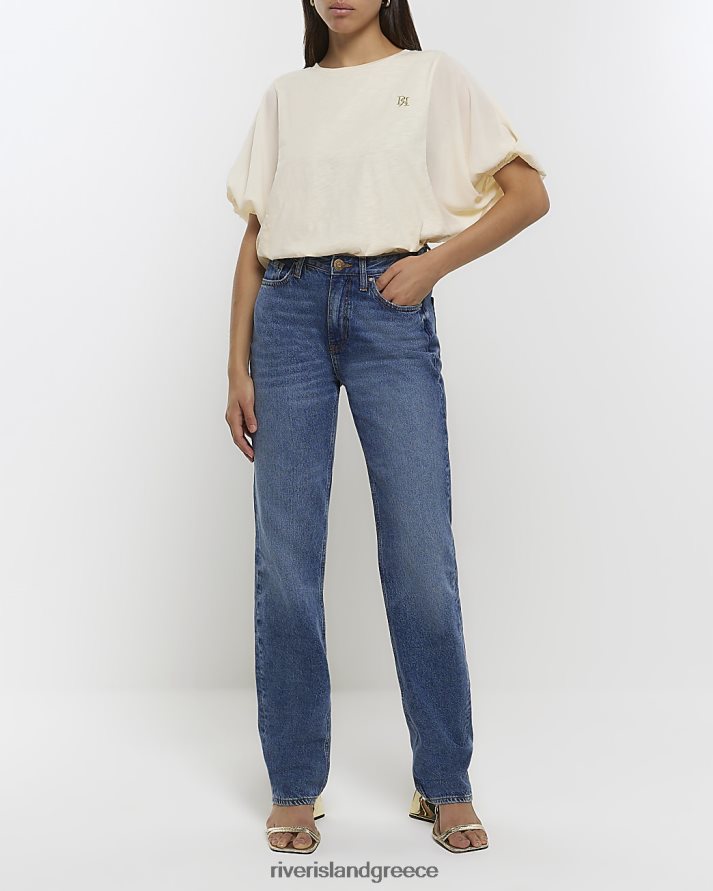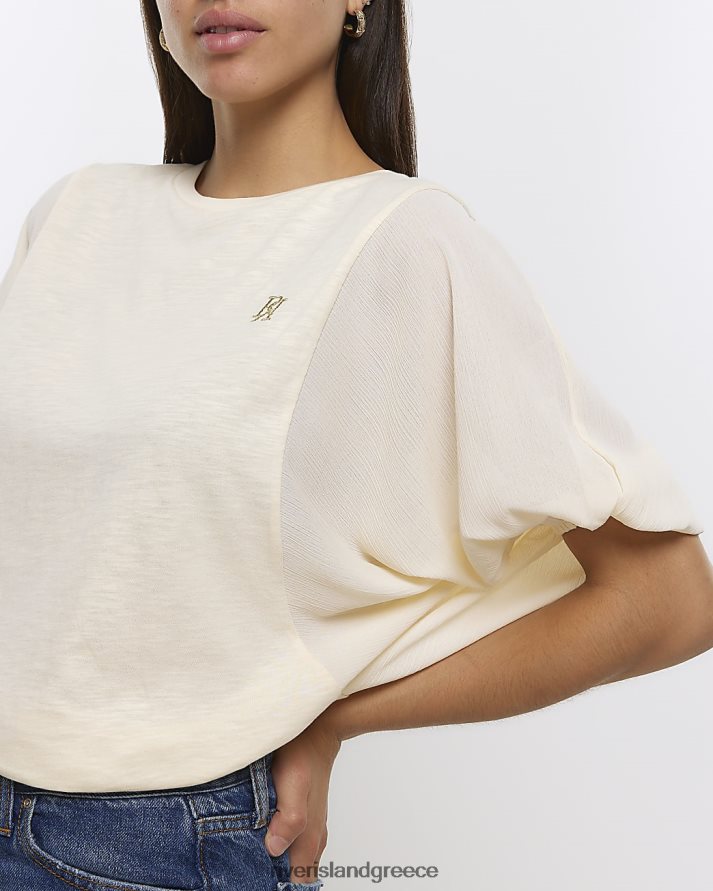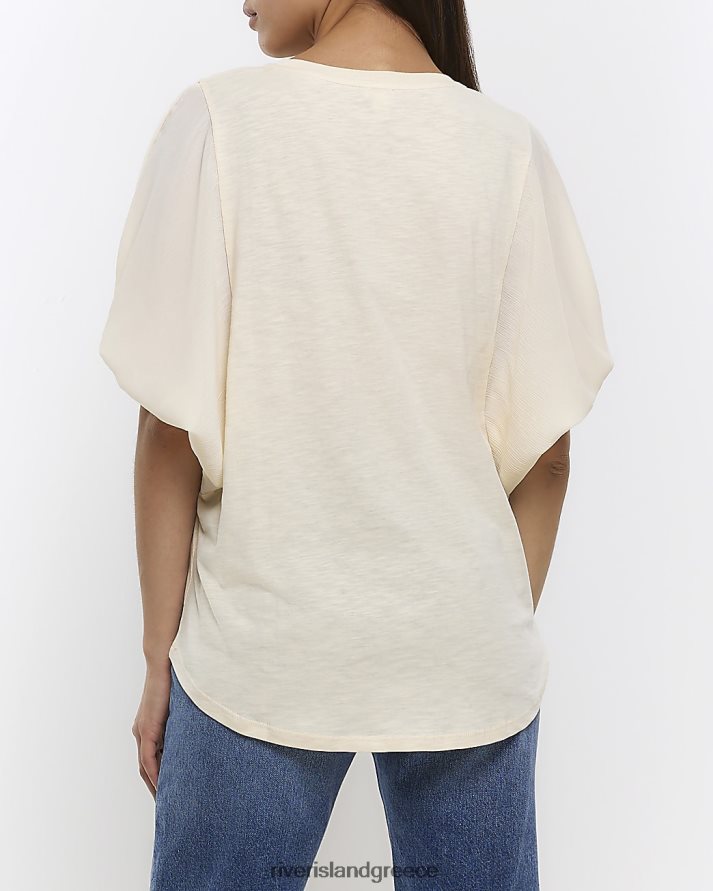 River Island ενδύματα μπεζ γυναίκες μπλουζάκι με μπαλόνι μανίκι B6N8X4224
