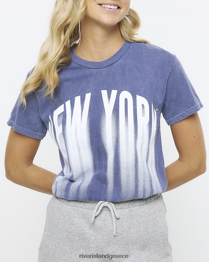 River Island ενδύματα μπλε γυναίκες θολή γραφική εκτύπωση μπλουζάκι B6N8X4554