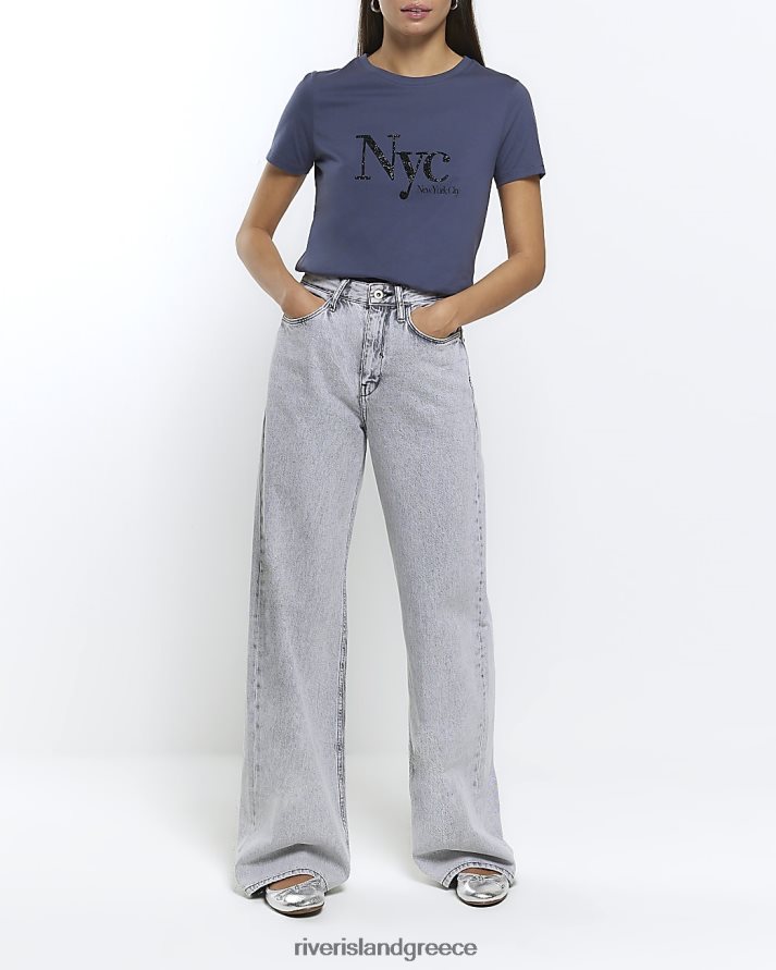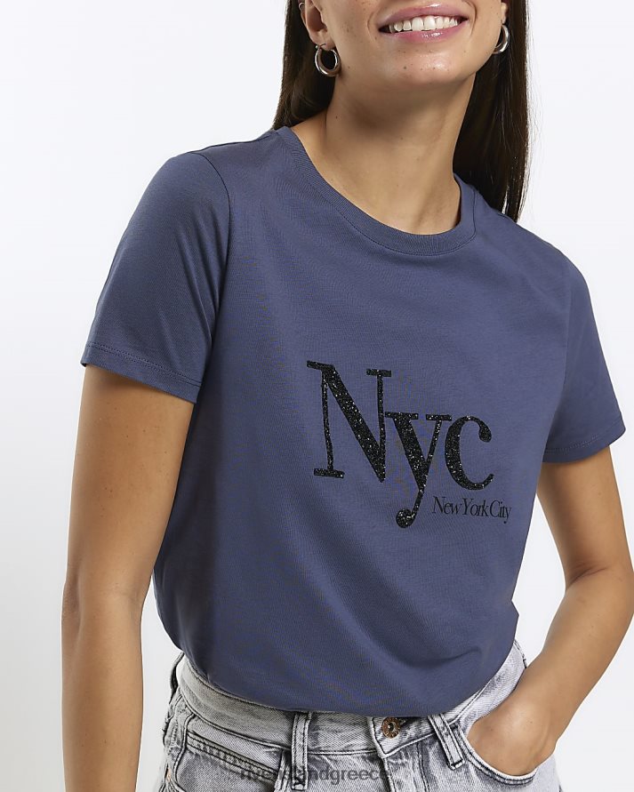 River Island ενδύματα ΠΟΛΕΜΙΚΟ ΝΑΥΤΙΚΟ γυναίκες διακοσμημένο γραφικό μπλουζάκι B6N8X4436