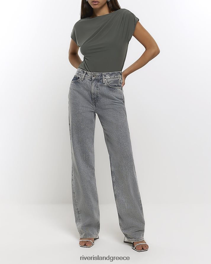 River Island ενδύματα χακί γυναίκες μπλουζάκι με λεπτομέρεια ντραπέ B6N8X1313