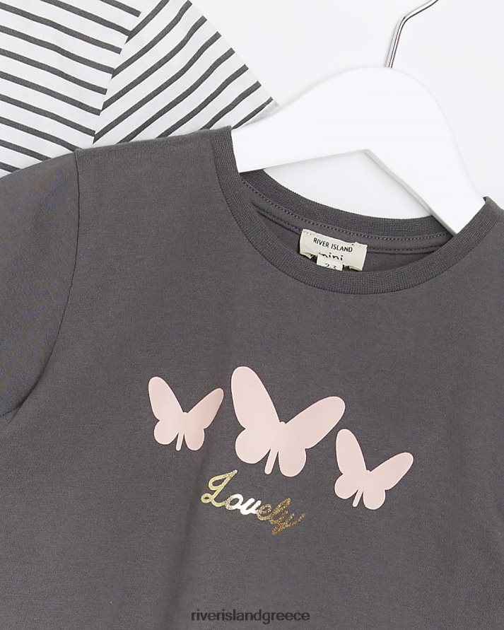 River Island ενδύματα κρέμα κορίτσια mg ριγέ μπλουζάκι 2 συσκευασία B6N8X6605