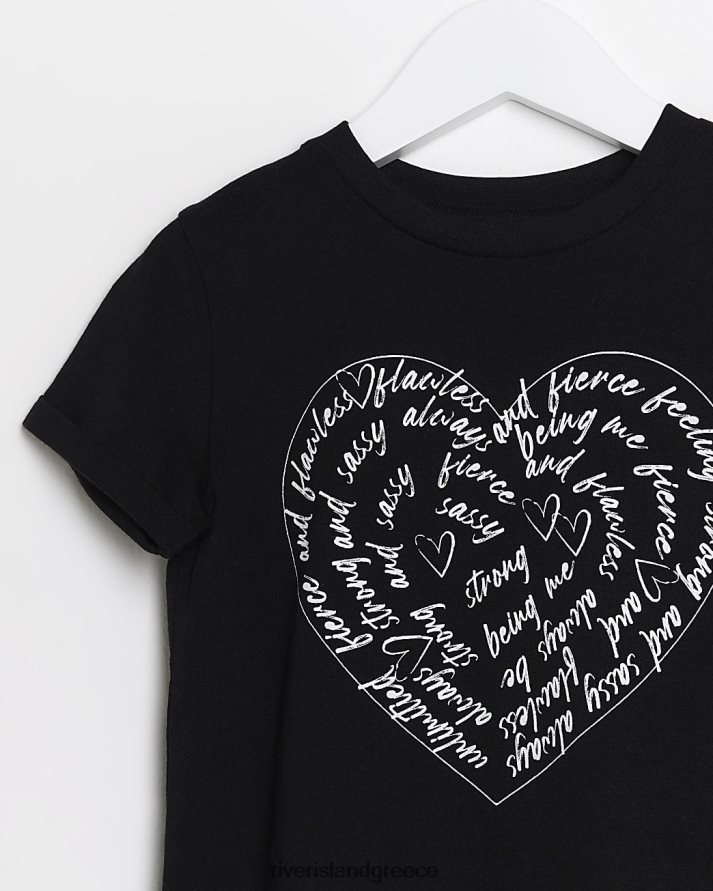 River Island ενδύματα μαύρος κορίτσια γραφικό μπλουζάκι καρδιών mg B6N8X6679
