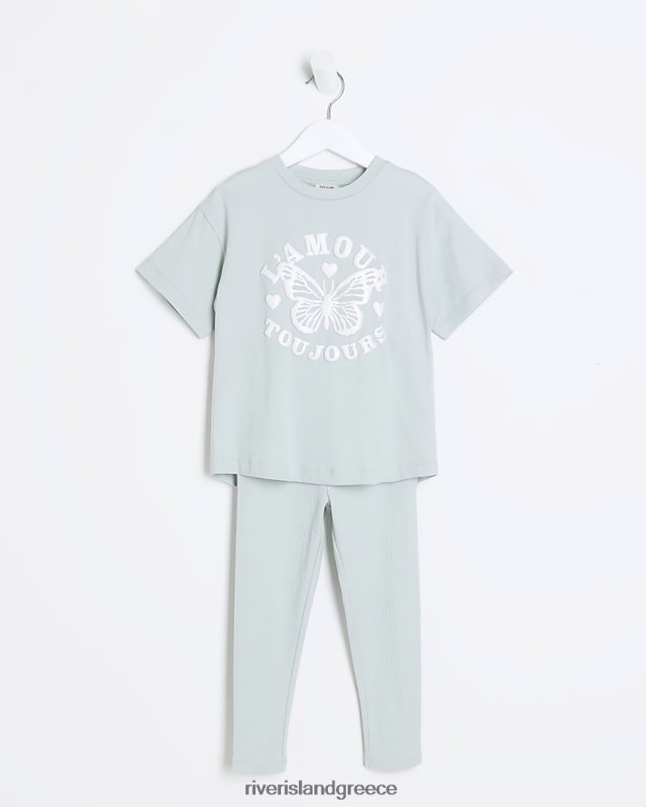 River Island ενδύματα χακί κορίτσια Σετ t-shirt και κολάν mg B6N8X6567