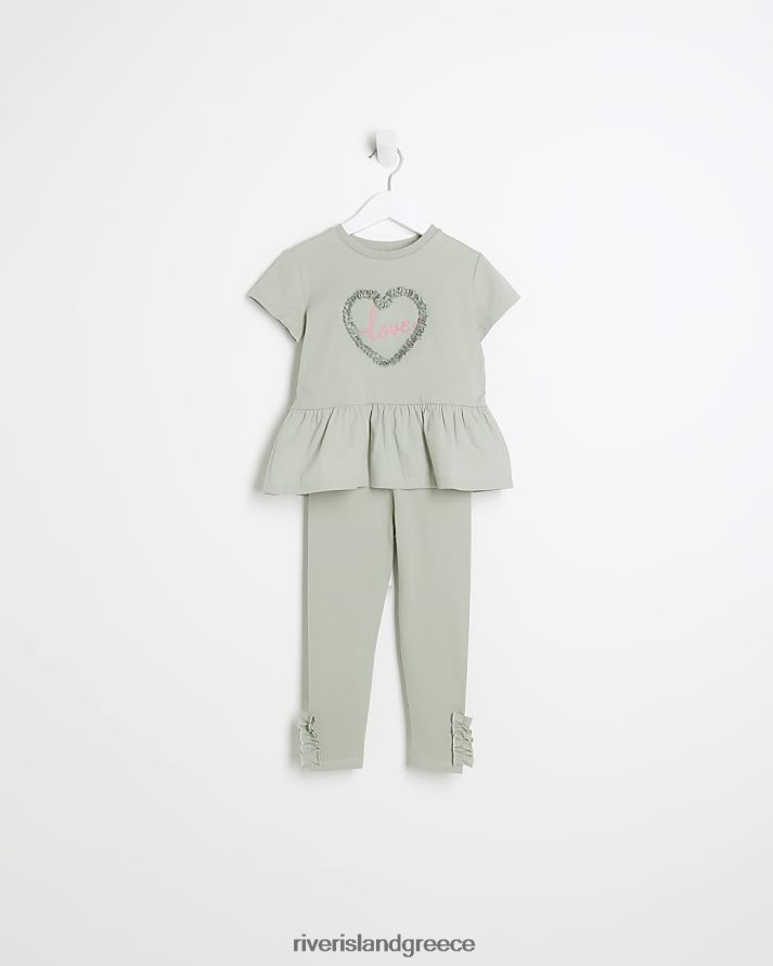 River Island ενδύματα χακί κορίτσια Σετ t-shirt και κολάν mg B6N8X6673