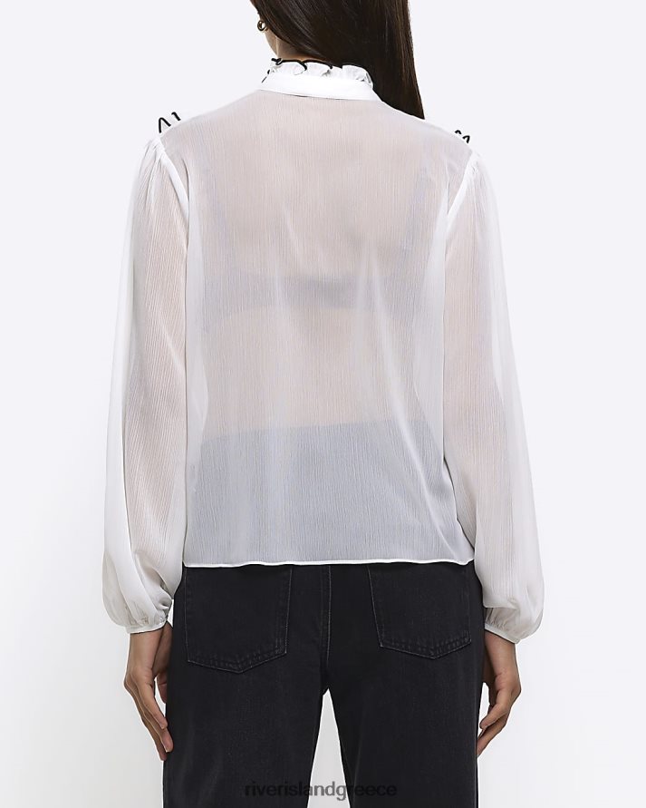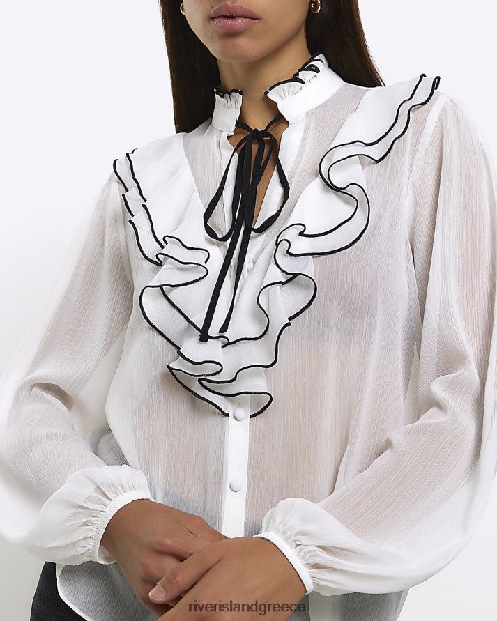 River Island ενδύματα άσπρο γυναίκες σιφόν frill μπλούζα B6N8X1116