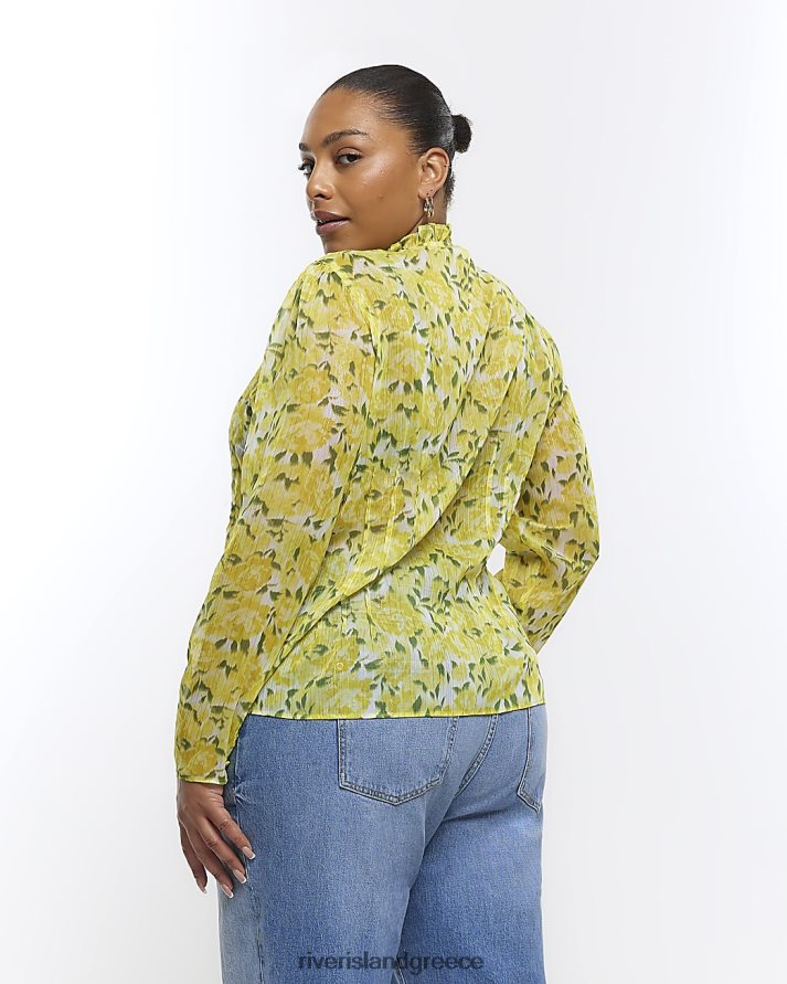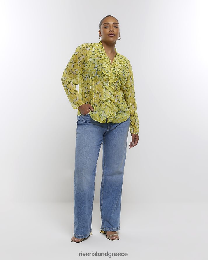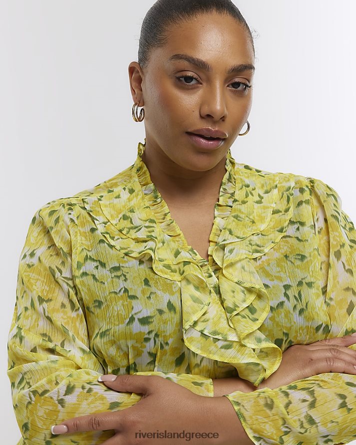 River Island ενδύματα κίτρινος γυναίκες συν φλοράλ μακρυμάνικη μπλούζα με βολάν B6N8X5165