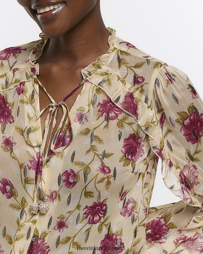 River Island ενδύματα κρέμα γυναίκες σιφόν φλοράλ μπλούζα B6N8X4316