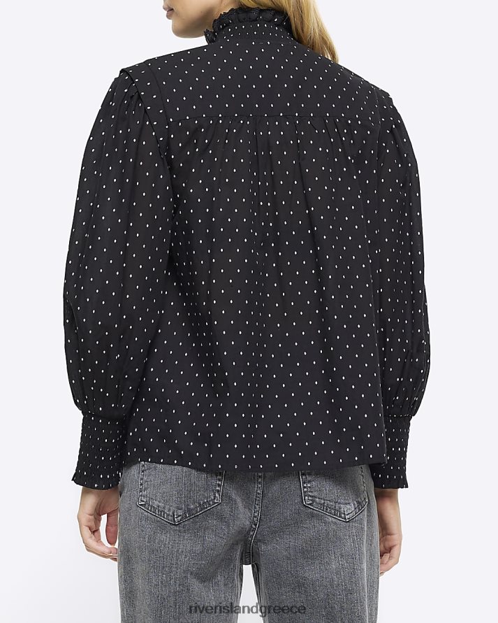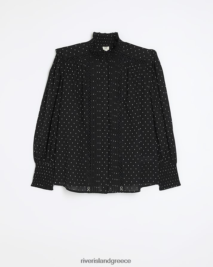 River Island ενδύματα μαύρος γυναίκες σποτ βικτοριανή μπλούζα B6N8X3782