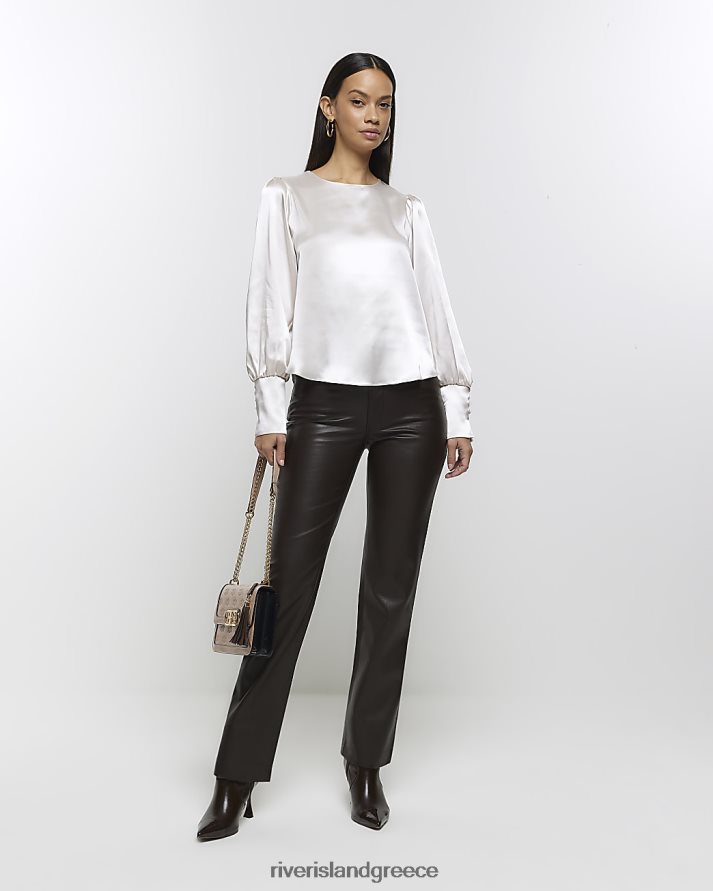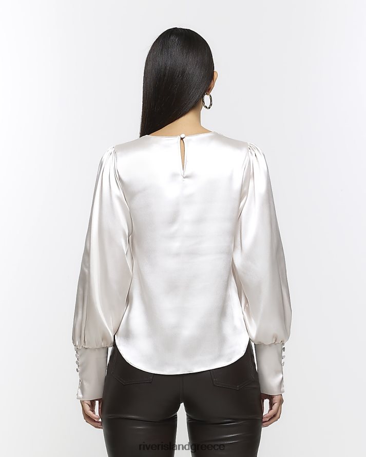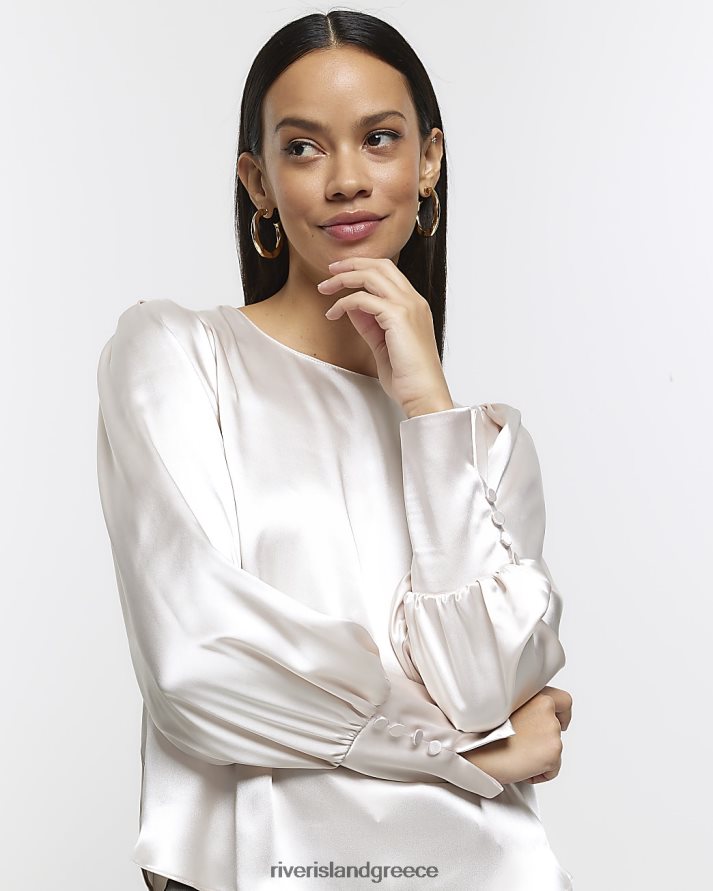 River Island ενδύματα μπεζ γυναίκες σατέν μακρυμάνικη μπλούζα B6N8X444