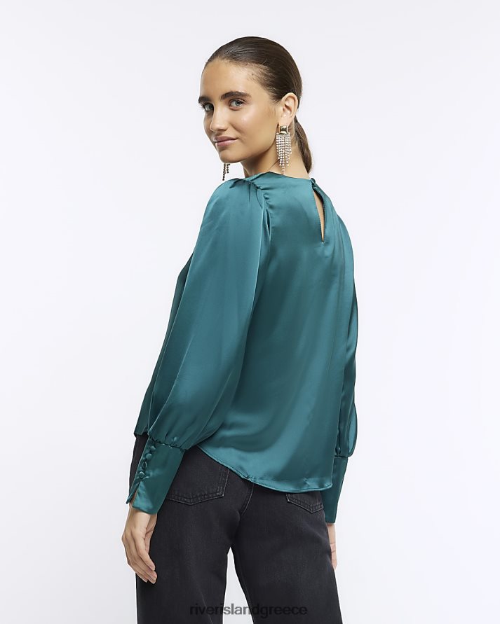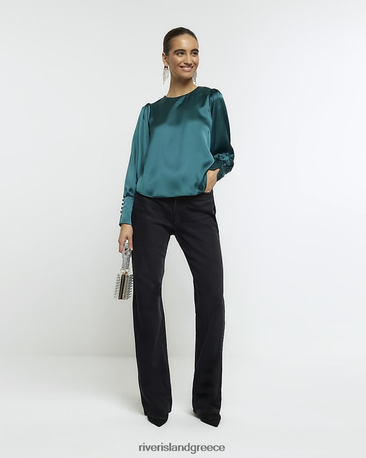 River Island ενδύματα πράσινος γυναίκες σατέν μακρυμάνικη μπλούζα B6N8X442