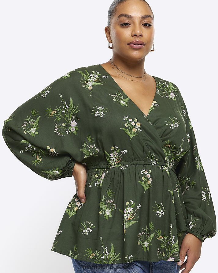 River Island ενδύματα πράσινος γυναίκες συν μπλούζα με λουλούδια B6N8X5103