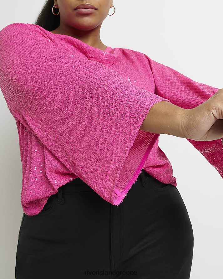 River Island ενδύματα ροζ γυναίκες συν μπλούζα παγιέτα B6N8X5069