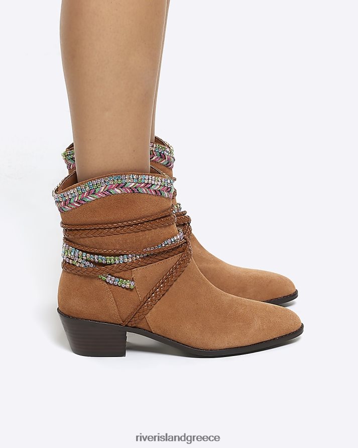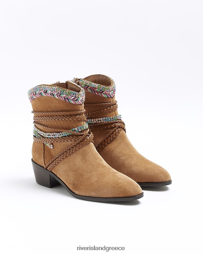 River Island είδη υπόδησης καφέ γυναίκες καστόρινες, διακοσμημένες μπότες γουέστερν B6N8X4553