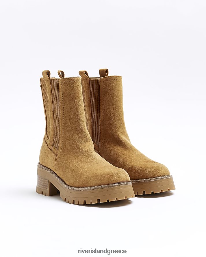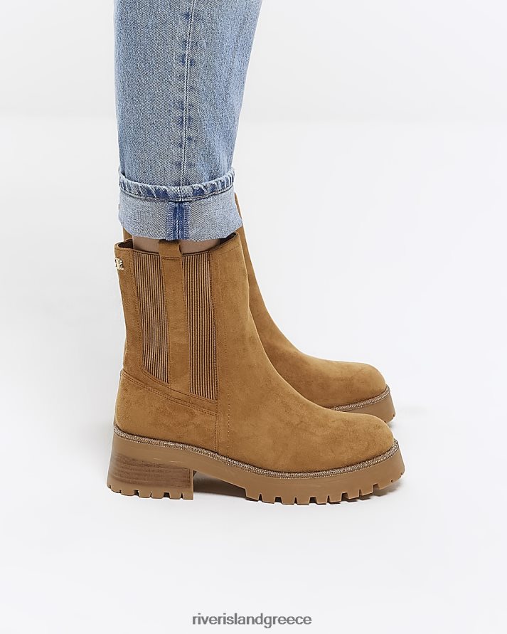 River Island είδη υπόδησης καφέ γυναίκες Μποτάκια chelsea με σουέντ διαμάντι B6N8X951