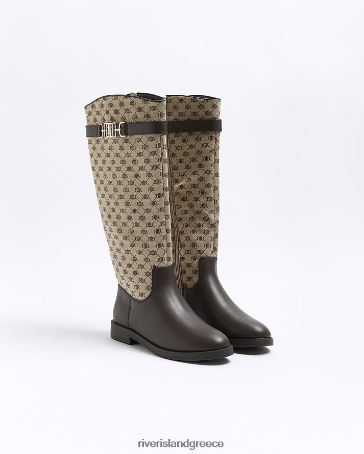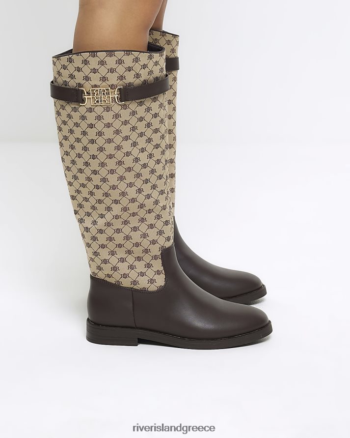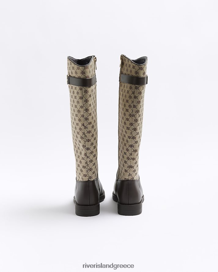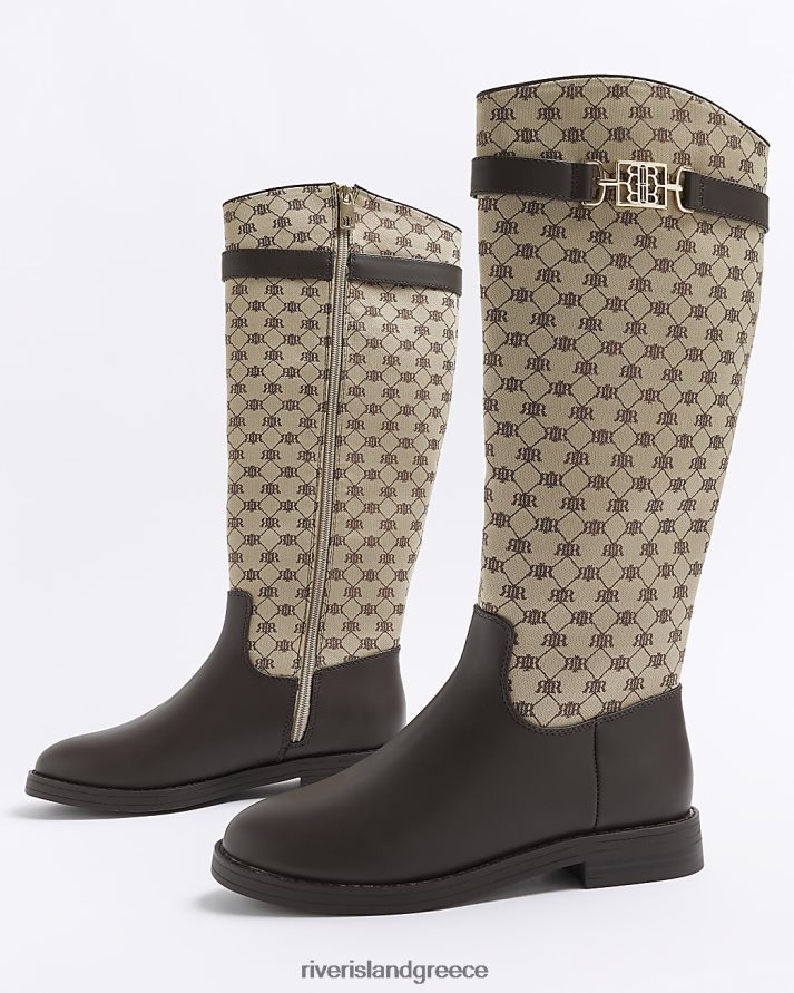 River Island είδη υπόδησης καφέ γυναίκες ri monogram ψηλές μπότες στο γόνατο B6N8X3953
